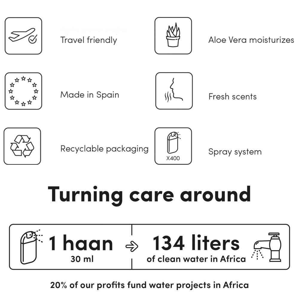Ontzettend fijne hand sanitizer. In de coronatijd erg blij mee geweest en nu nog steeds. Klein van formaat en past makkelijk in je (broek)zak of tas. Ideaal voor onderweg en op reis, in het openbaar vervoer, op een festival... Ik heb er altijd wel ééntje bij me, ga niet meer weg zonder m'n HAAN :-)
