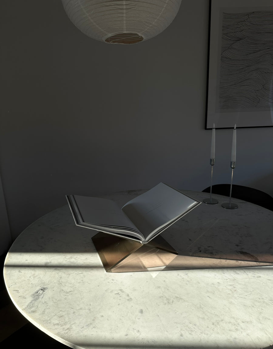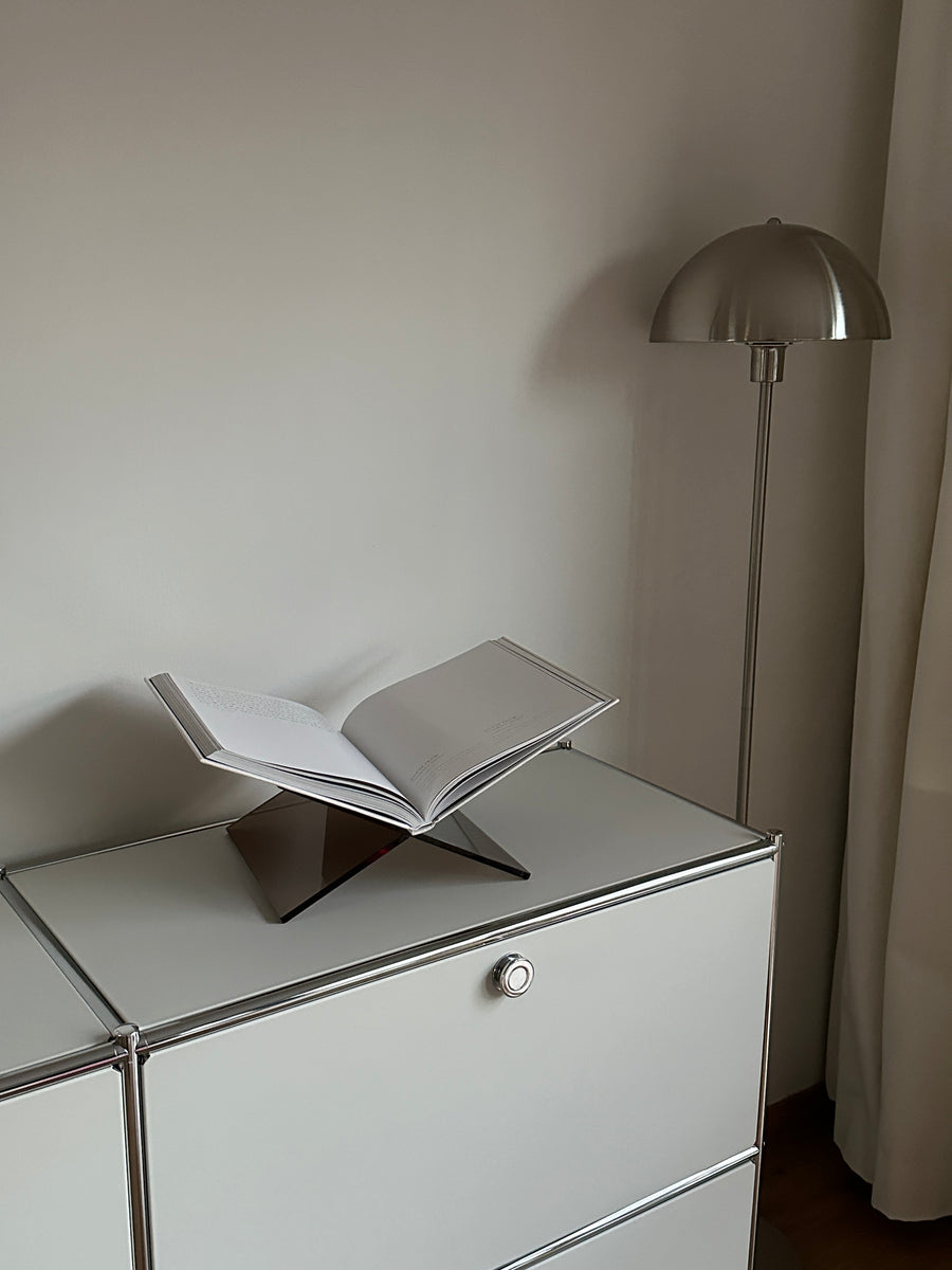 Deze moderne boekenstandaard is een echte blikvanger. Het kleurrijke acrylglas vangt het licht en werpt speelse reflecties door de ruimte, waardoor hij niet alleen functioneel is, maar ook sfeer toevoegt aan je interieur. Of je nu een vrolijk kleuraccent zoekt of juist een statement wilt maken in een rustige, neutrale ruimte: deze standaard past perfect. Hij biedt een stevig en stijlvol podium voor koffietafelboeken en kookboeken. Gemaakt van hoogwaardig, breukbestendig acrylglas en met een draagkracht van 8–10kg is deze boekenstandaard geschikt voor zelfs de zwaarste boeken.