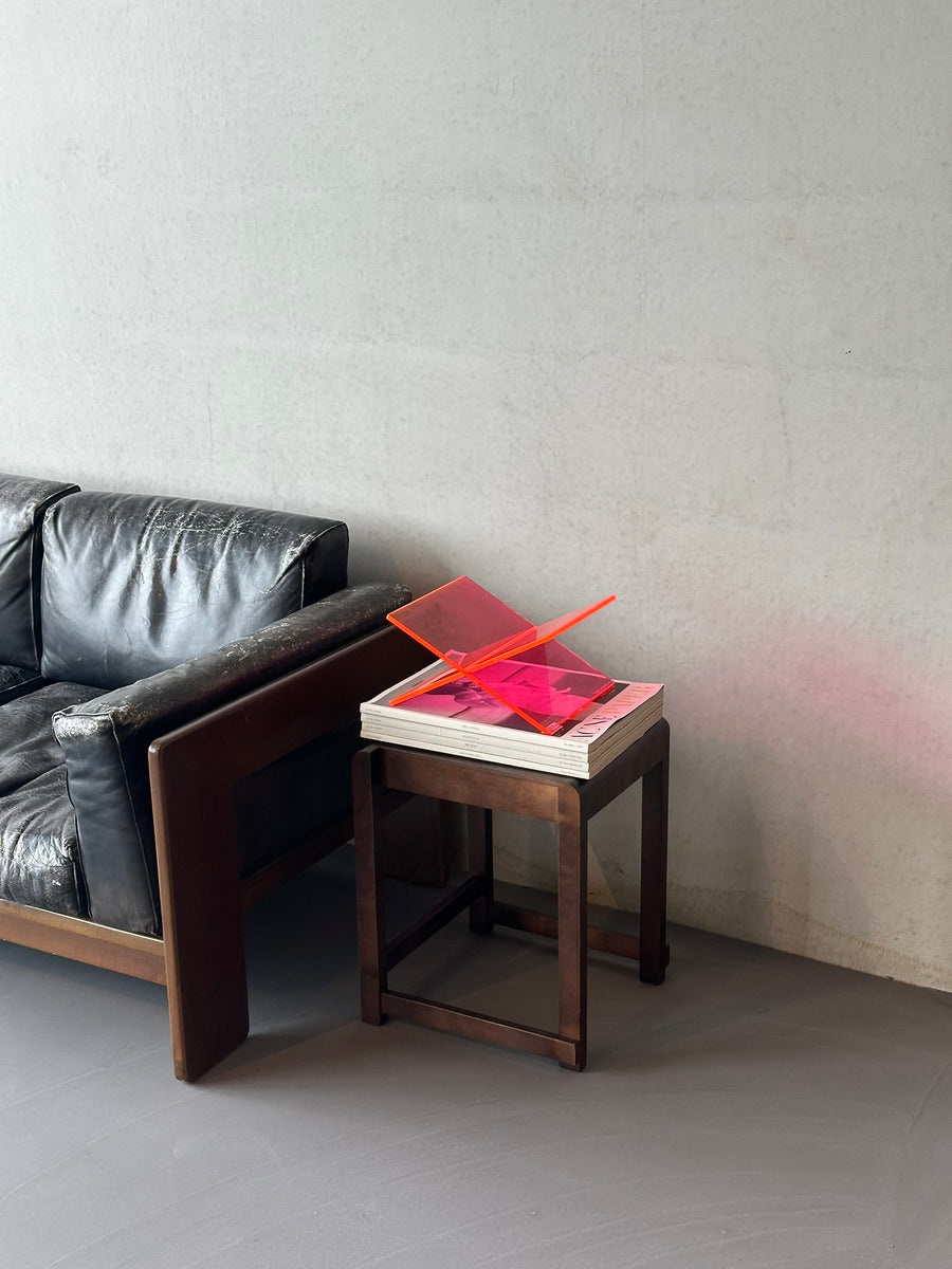 Blikvanger in huis: moderne boekenstandaard van kleurrijk acrylglas.