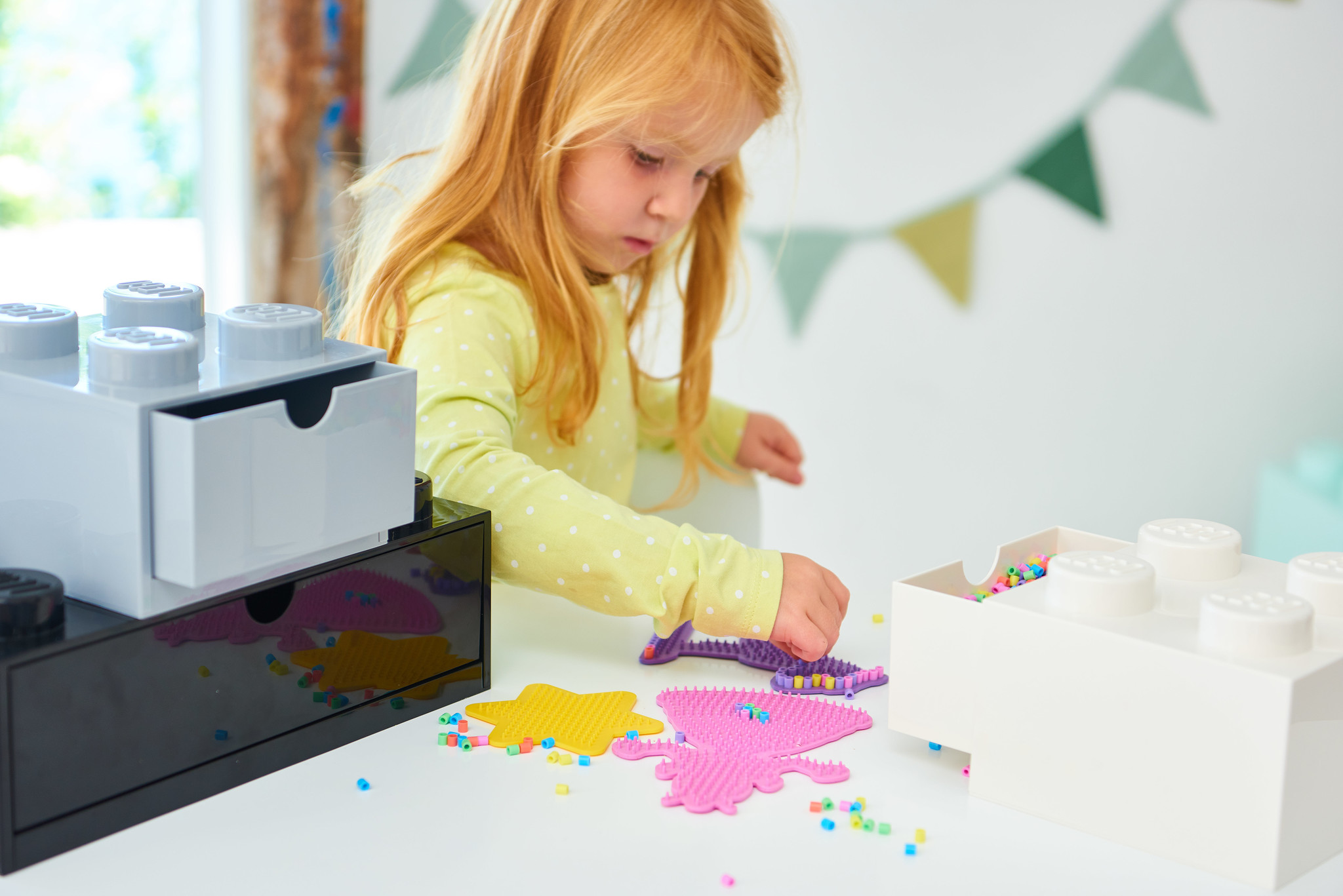 Van deze toffe Lego Brick opberglade wordt iedereen blij: de kinderen leven in een levensgroot Legoland en jij in een opgeruimd huis! Deze kleinere variant van de opbergbox met een lade past mooi op een bureau of op een kastje. Stapel verschillende boxen op elkaar voor het echte LEGO-effect en voor nóg meer opbergruimte.