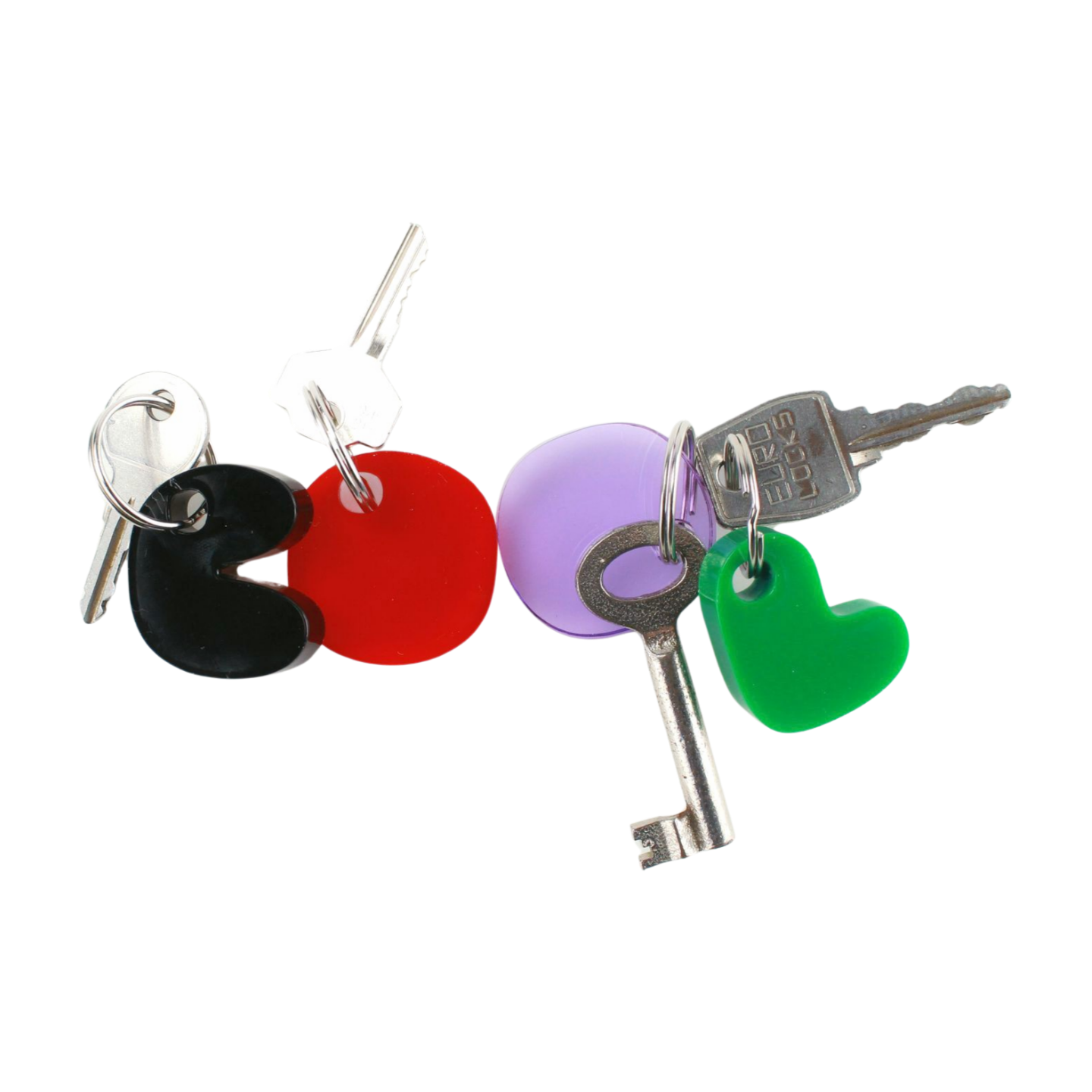 De Chubby Types van mo man tai zijn een set sleutelhangers die samen een grappig 4-letter woord vormen.