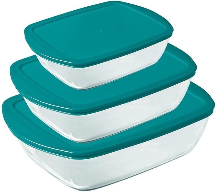 Waarom kiezen tussen esthetiek en functionaliteit als het allebei kan? Onze set van 3 Pyrex® schalen van borosilicaatglas is ontworpen om dit dilemma op te lossen, zodat je niet langer hoeft te kiezen. Een assortiment van drie maten in 0,4 liter, 1,2 liter en 2,6 liter met om uit te kiezen. Zo kun je je favoriete gerechten bereiden die je gemakkelijk in de koelkast of vriezer kunt bewaren en (zonder deksel) kunt opwarmen in de oven of magnetron.