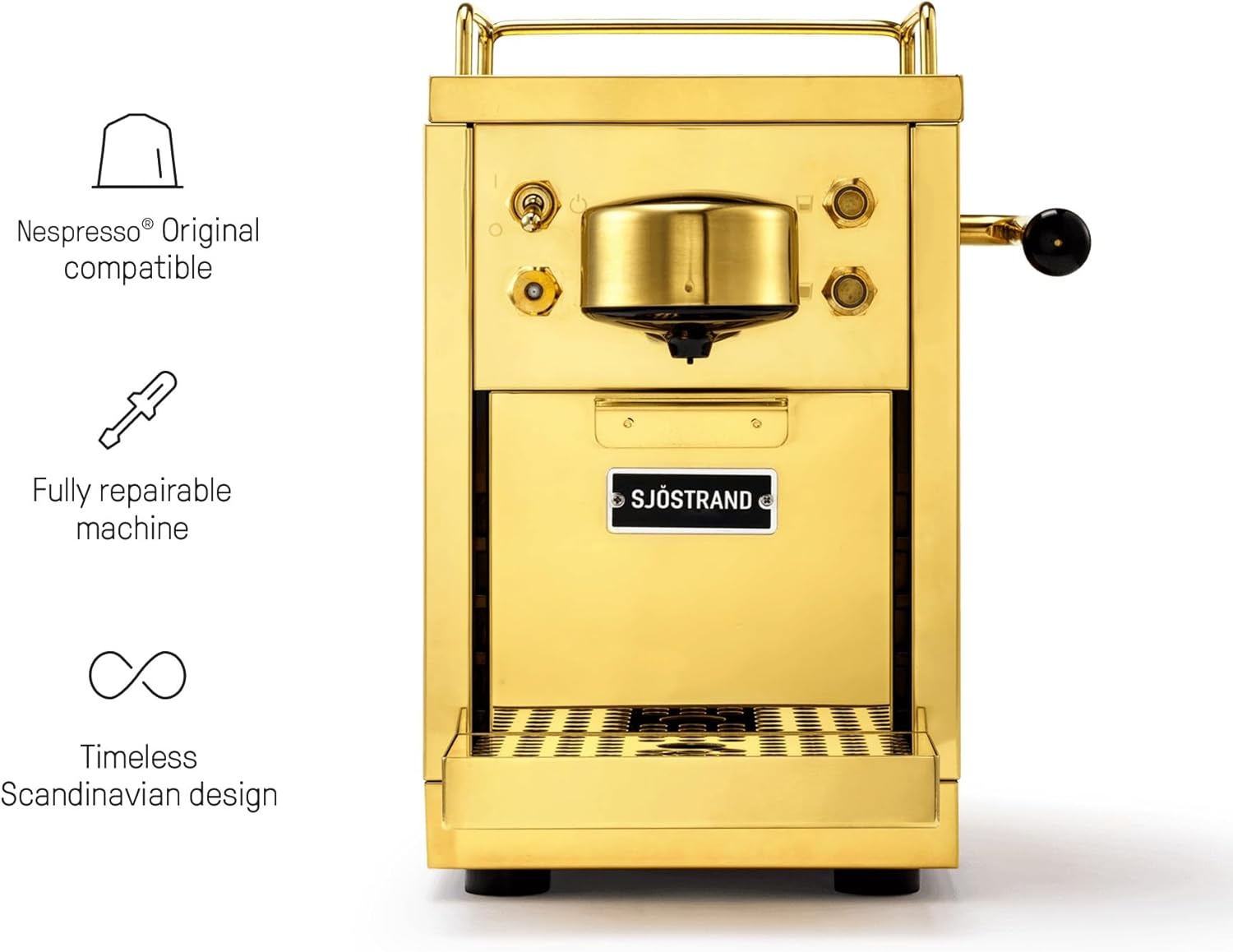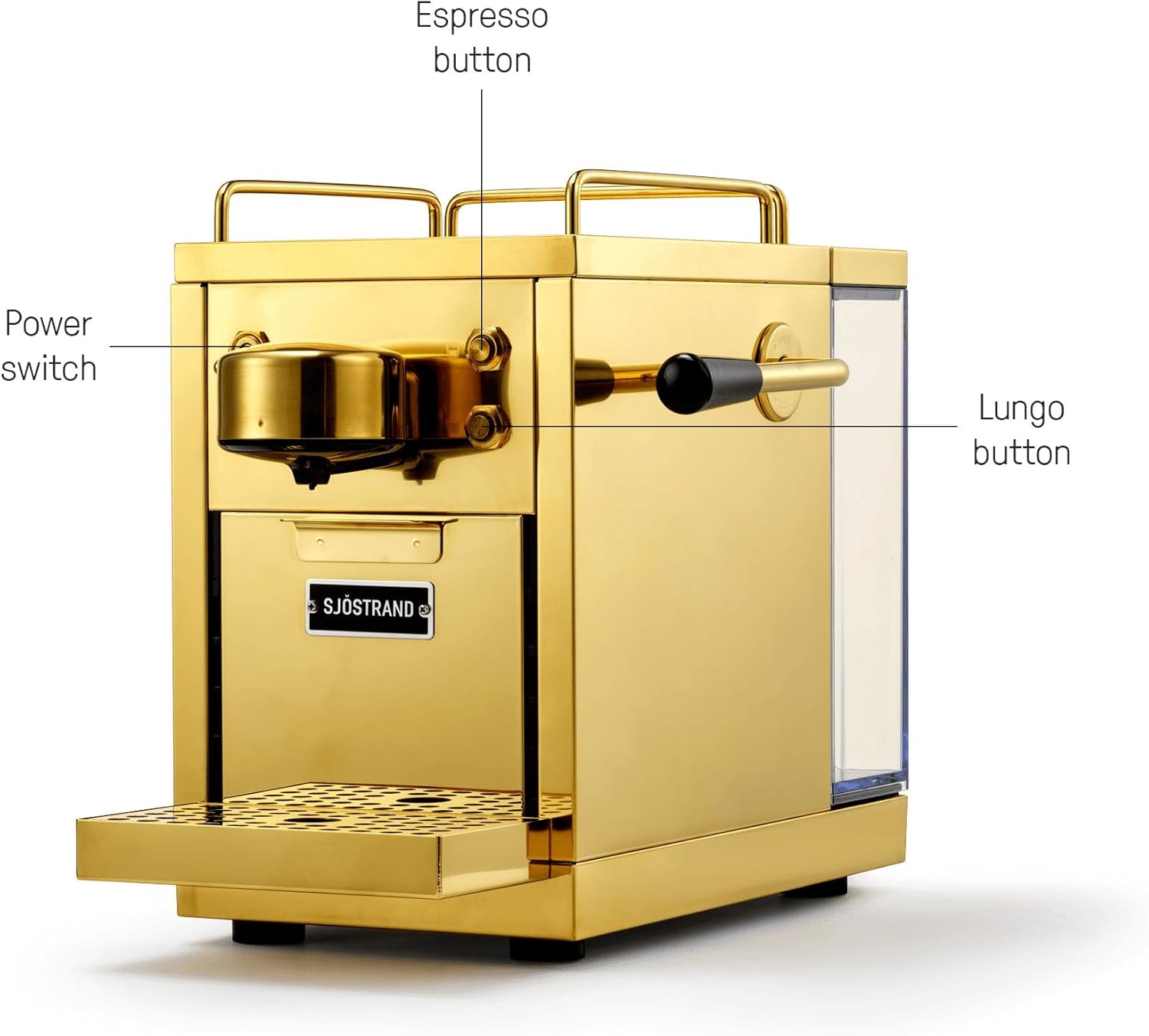 Sjöstrand The Original is een stijlvolle Nespresso®-compatibele koffiecapsulemachine met een hoogwaardige roestvrijstalen behuizing, een minimalistisch Scandinavisch ontwerp en een gepolijste chroomafwerking. Het slanke Zweedse ontwerp, het duurzame materiaal en de duurzaamheidsaanpak vallen gemakkelijk in de smaak. De machine maakt gebruik van een constante temperatuur en nauwkeurig waterverbruik voor een perfecte extractie van smaken en aroma's. Het is de ideale mix van stijl en functionaliteit.