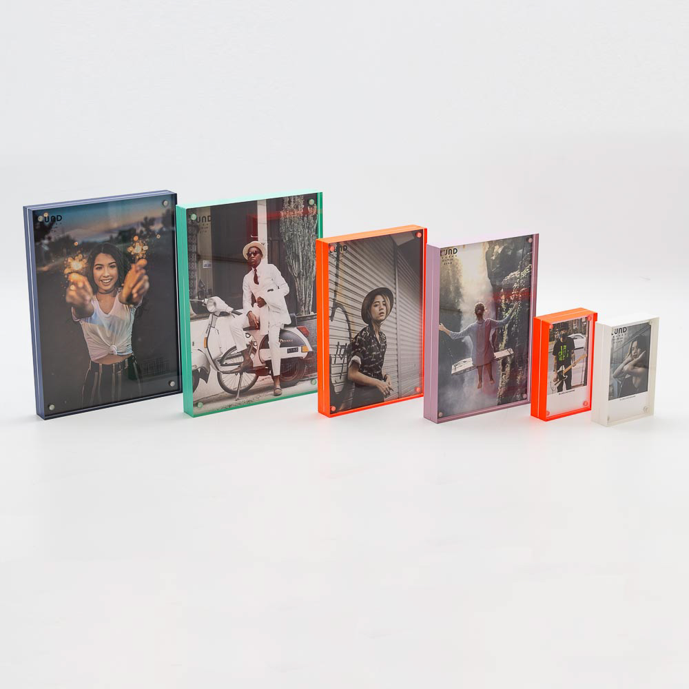 Superleuk zijn de fotoframes van Lund London! Deze zogenaamde Skittle-frames zijn gemaakt van hoogwaardig Japans recyclebaar acryl en afgewerkt met een gekleurde rand voor een speelse touch. Jouw foto’s kun je vrijstaand weergeven, zowel in staande als liggende positie. Door de magneetsluiting kun je heel gemakkelijk en snel jouw foto’s veranderen. Zo heb je iedere week een nieuwe favoriete herinnering op je bureau!