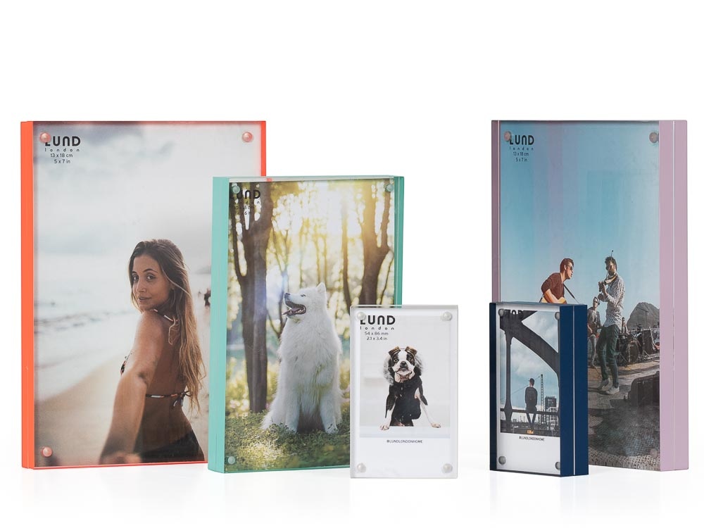 Superleuk zijn de fotoframes van Lund London! Deze zogenaamde Skittle-frames zijn gemaakt van hoogwaardig Japans recyclebaar acryl en afgewerkt met een gekleurde rand voor een speelse touch. Jouw foto’s kun je vrijstaand weergeven, zowel in staande als liggende positie. Door de magneetsluiting kun je heel gemakkelijk en snel jouw foto’s veranderen. Zo heb je iedere week een nieuwe favoriete herinnering op je bureau!