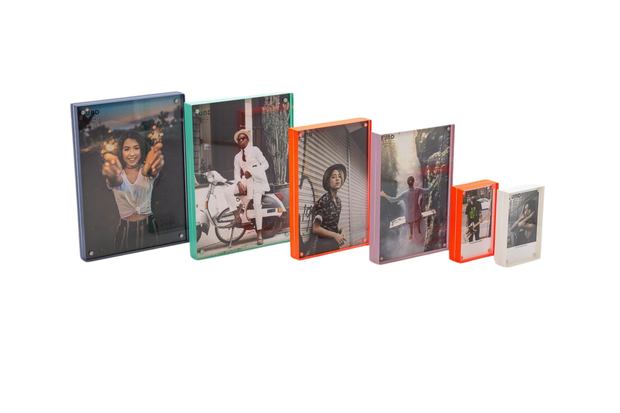 De zogenaamde Skittle-frames zijn gemaakt van hoogwaardig Japans recyclebaar acryl en afgewerkt met een gekleurde rand voor een speelse touch. Jouw foto’s kun je vrijstaand weergeven, zowel in staande als liggende positie. Door de magneetsluiting kun je heel gemakkelijk en snel jouw foto’s veranderen. Zo heb je iedere week een nieuwe favoriete herinnering op je bureau!