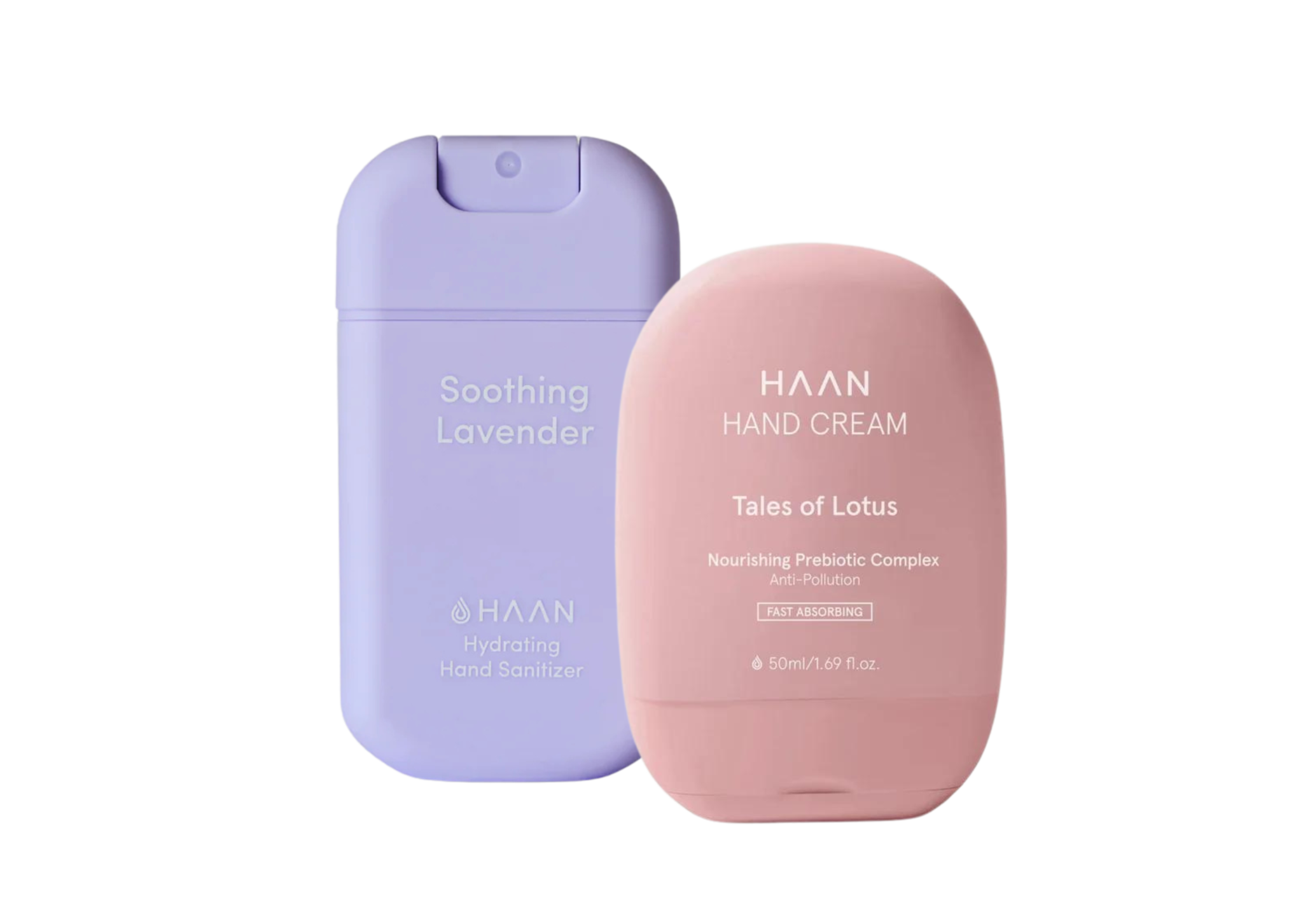 Deze HAAN Soothing Lavender hand sanitizer én tales of Lotus handcrème (Beiden navulbaar!) zorgen samen voor een echt schone en gezonde huid. Compact, fris, hydraterend en verzorgend…, dit duo wordt jouw volgende must-have!