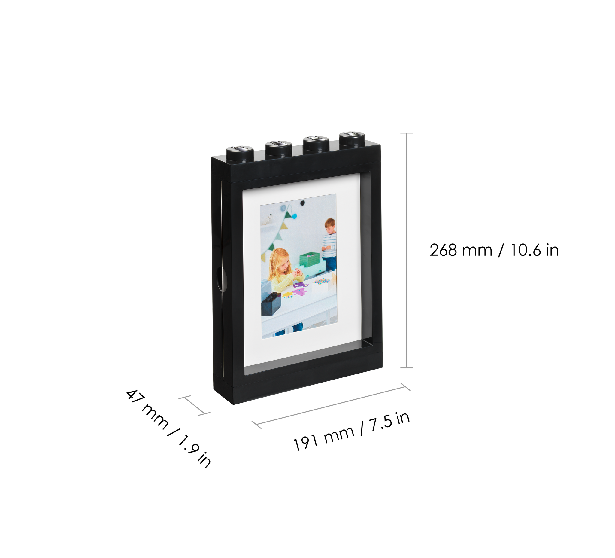 Herbeleef je favoriete momenten met deze stijlvolle iconic fotolijst van Lego! De lijst heeft de vorm van een Lego steen en is ook nog eens stapelbaar. Compatible met de minifiguren-vitrines en diep genoeg om minifiguren op uit te stallen. Geschikt voor twee fotoformaten: 10x15cm en 13x18cm.