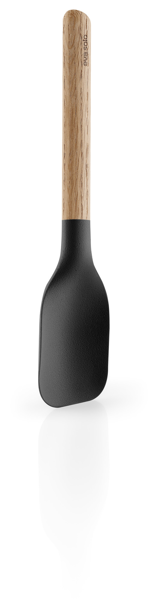 Deze veelzijdige roerspaan van Eva Solo maakt het koken en bakken in de keuken een stuk makkelijker. De rustieke eikenhouten handgreep in combinatie met de zwarte siliconen roerspaan geven je keuken een stijlvol tintje. De roerspaan is multifunctioneel. Gebruik hem bijvoorbeeld om een luchtig beslag te mengen of gebruik hem in potten en pannen tijdens het koken. Het siliconen zorgt ervoor dat de potten en pannen niet zullen beschadigen. Daarnaast zorgt het er ook voor dat ingrediënten niet zo makkelijk aan de lepel blijven plakken. Samen met de comfortabele handgreep zorgt het voor prettige manier van koken.