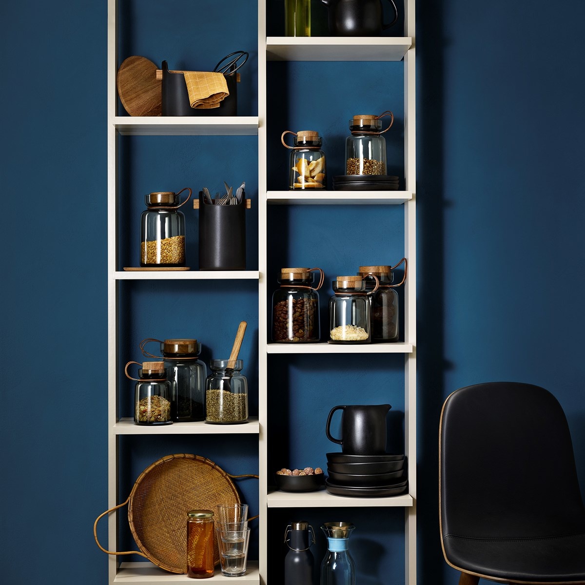 De Silhouette bewaarpot van Eva Solo is een elegante en aantrekkelijke bewaarpot voor droge keukenbenodigdheden zoals pasta, rijst of bloem. Het gerookte glas is niet alleen decoratief, het beschermt de inhoud ook tegen zonlicht, waardoor het aroma en de kleur langer behouden blijven.