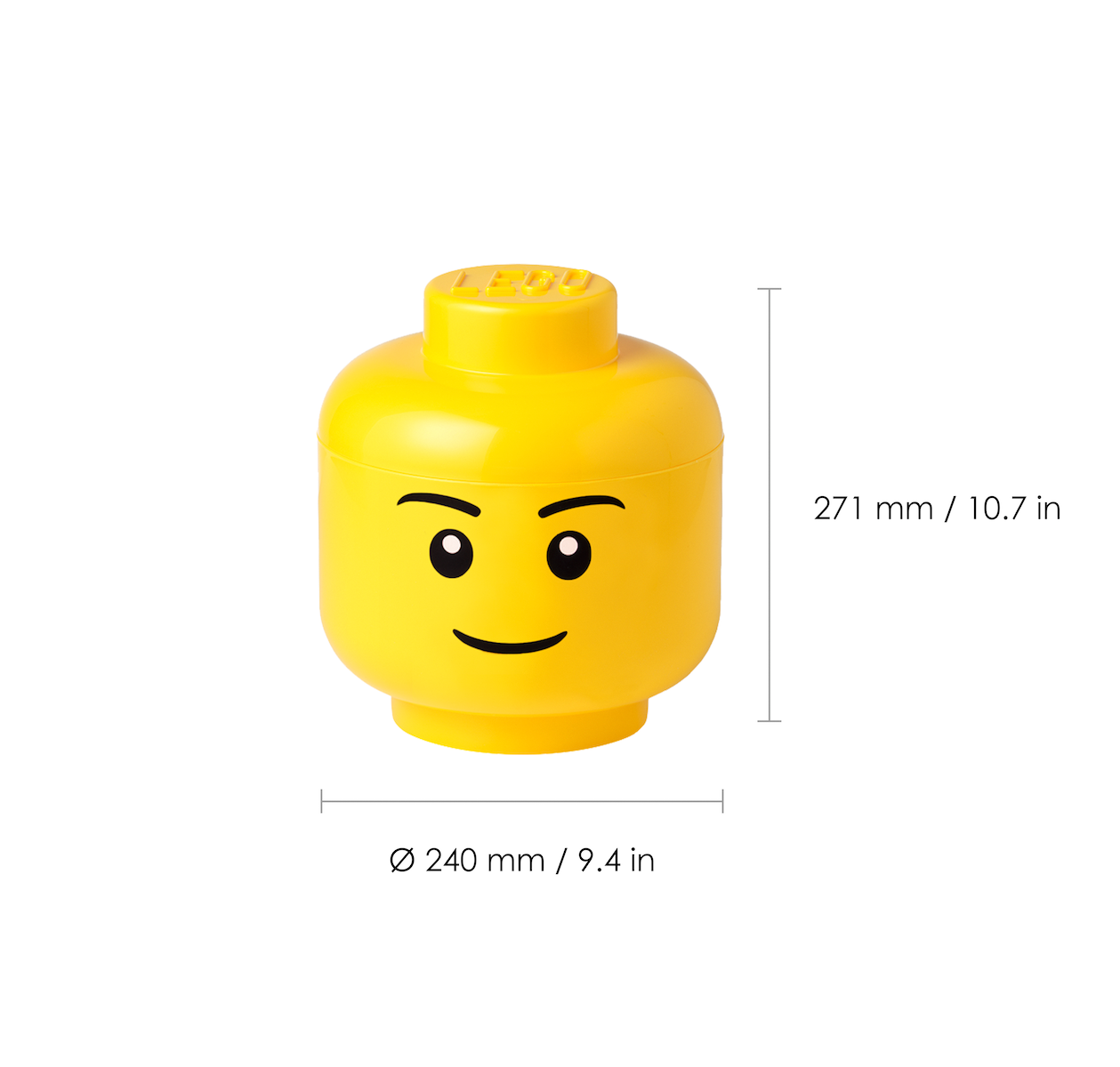 Hoe leuk, het iconische hoofd van het LEGO poppetje als opbergbox! Deze vrolijke opbergbox die vriendelijk naar je lacht, biedt ruimte om LEGO-steentjes of accessoires, maar ook andere spulletjes in op te bergen. Met deze opbergbox kun je op een speelse en georganiseerde manier je spullen opbergen. Praktisch én decoratief!
