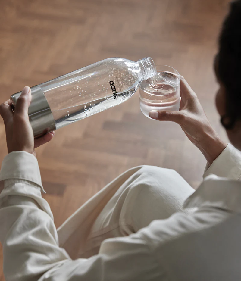 Aarke gebruikt alleen voedselveilig, zuiver PET-plastic. Dit betekent dat deze flessen BPA-vrij zijn en niet giftig, en geen schadelijke chemicaliën bevatten. Aarke pet-flessen zijn getest en goedgekeurd volgens de Duitse LFGB-norm, Californië Prop 65 en FDA CFR 21.
