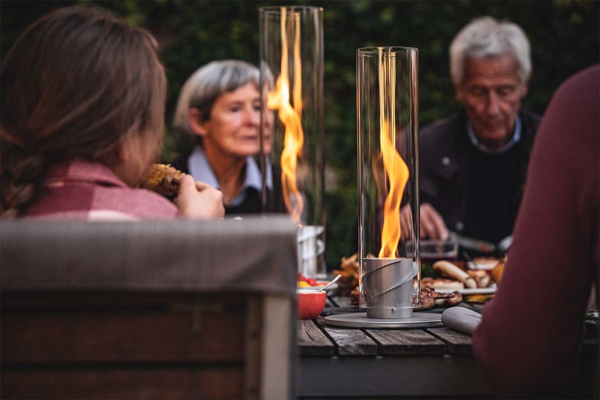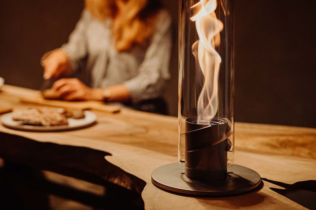 De SPIN 90 is dé stijlvolle en multifunctionele lantaarn en decoratie voor elke gelegenheid. Het tafelvuur heeft een roestvrijstalen behuizing, een borosilicaat glas cilinder en een basis met anti-slip en oppervlaktebeschermers voor veilig staan en een brandblusdeksel voor vroegtijdig doven. Door de robuuste constructie en de zeer stevige voet is het dan ook heel veilig om de SPIN binnen te gebruiken.