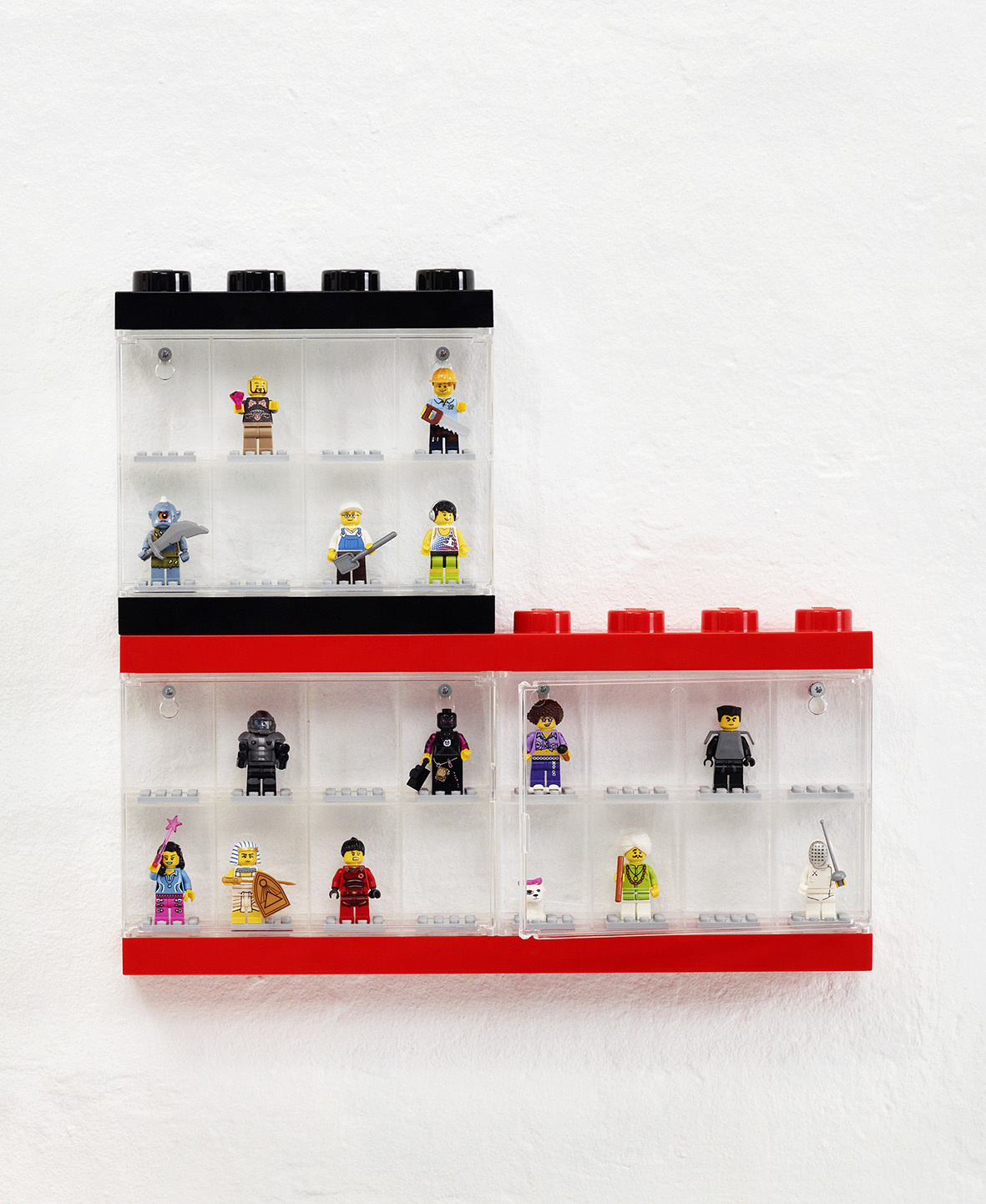 Met deze LEGO minifiguur display, met ruimte voor 8 minifiguren, kun je je mooiste LEGO® minifiguren tentoonstellen én opbergen. Plaats jouw favoriete poppetjes op de LEGO platen en sluit de transparante deurtjes om ze veilig op te bergen. De vitrines zijn stapelbaar. Ze kunnen ergens neer gezet worden of aan de muur worden gemonteerd.
